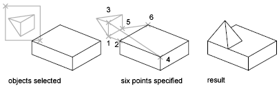 Either one, two, or three pairs of source points and definition points can be specified to move, rotate, or tilt the selected objects, aligning them with points on another object.
