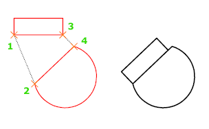 The selected object is rotated (1 and 3) so that it aligns with the destination object (2 and 4).
