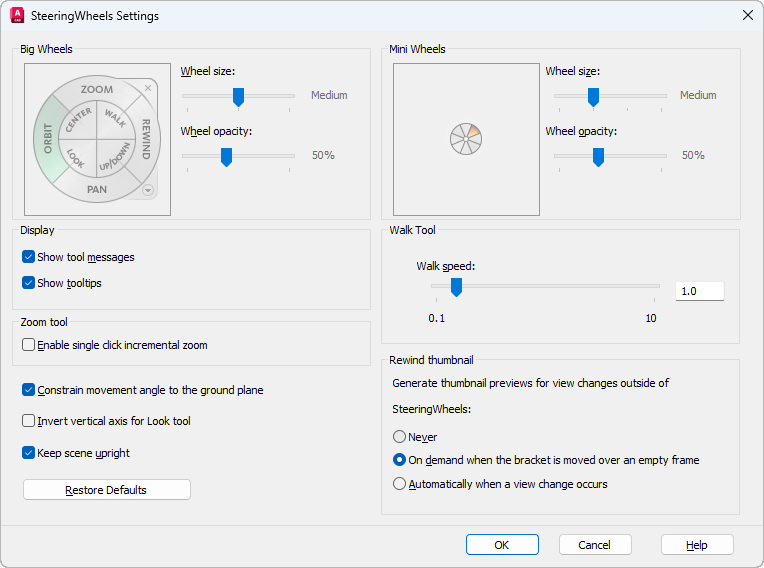 Controls when thumbnails are generated for view changes that are made without using a wheel. The generated thumbnails are used for the Rewind tool.