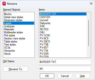 Changes the names assigned to named objects such as layers and dimension styles.