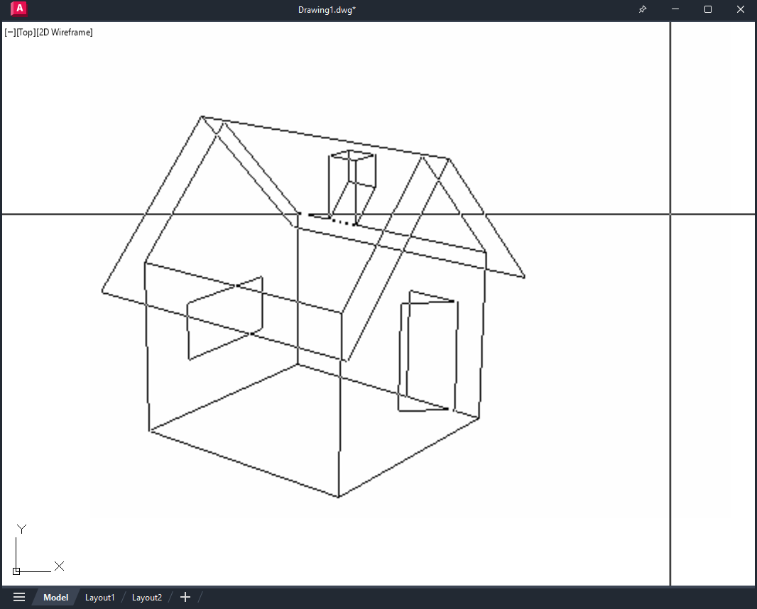 If you press Enter at the Select Objects prompt, DVIEWBLOCK displays a preview image. You can create your own DVIEWBLOCK block in a 1 unit by 1 unit by 1 unit area, with its origin at the lower-left corner. The following illustration shows an example of using the default DVIEWBLOCK to set the view (moving the graphics cursor adjusts the view).