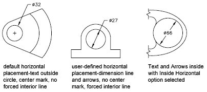 You can create several different styles of diameter dimensions as shown in the illustrations.