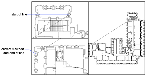 - Make another viewport current by clicking within it, and then specify the second endpoint of the line.