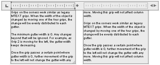 You can create and edit multiple columns in multiline text using the In-Place Text Editor column options and column grips. Editing columns using grips allows you the flexibility of seeing the changes as you make them.