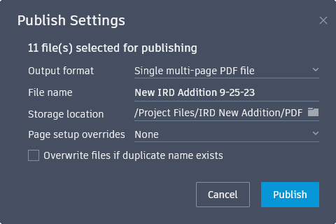 The Connected Sheet Set Manager supports all Publish features available in the Classic Sheet Set Manager.