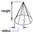 Specifies the endpoint location for the cone axis. The axis endpoint is the top point of the cone or the center point of the top face of the cone frustum (Top Radius option). The axis endpoint can be located anywhere in 3D space. The axis endpoint defines the length and orientation of the cone.