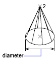 Defines the base diameter of the cone by specifying two points.