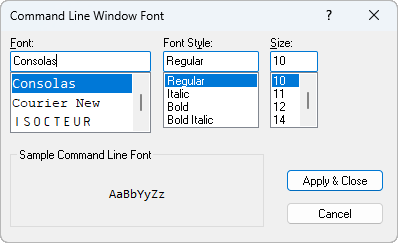 Sets the font displayed in the Command window.