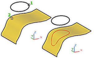 Projects points, lines, or curves onto a 3D solid or surface from different directions.