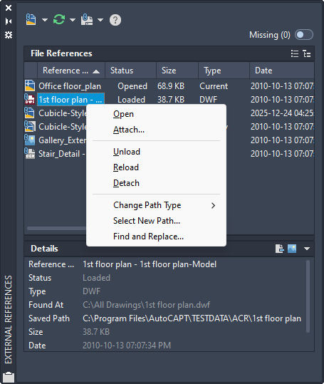 If the reference you select for editing has attached xrefs or block definitions, the reference and its nested references are displayed and available for selection in the Reference Edit dialog box. Nested references are displayed only if the object chosen for selection is part of a nested reference. Only one reference at a time can be selected for editing. If you are editing a reference that contains OLE objects, the OLE objects are displayed but cannot be selected for editing.