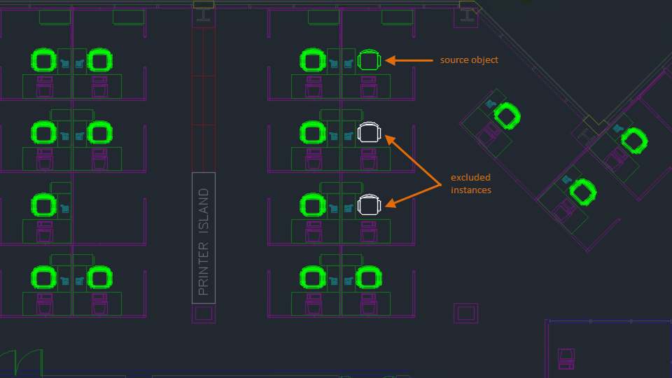 The BSEARCH command allows you to easily find and convert multiple instances of the specified geometry into blocks.