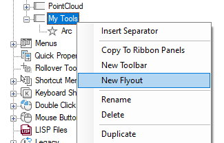 A new flyout on the toolbar is created and new toolbar is also created based on the pull-down menu that was used.