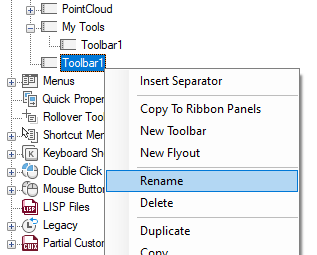 A new toolbar (named Toolbar1) is created and a new flyout that references the toolbar is placed at the bottom of the toolbar you selected.