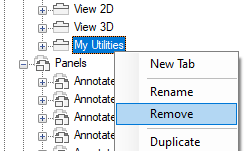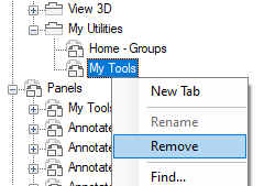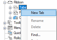 A new ribbon tab (named New Tab) is placed at the bottom of the Tabs node.