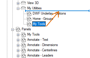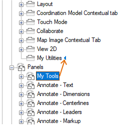 Use the visual indicator bar to specify the position of the ribbon panel on the ribbon tab.