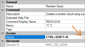 - In the Properties pane, click in the Key(s) box, and then click the […] button to open the Shortcut Keys dialog box.