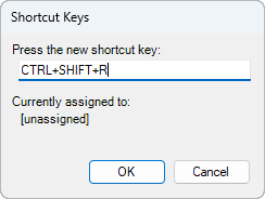- Click OK to assign the key combination and close the Shortcut Keys dialog box.