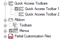 <file name> pane, click the plus sign (+) next to the Quick Access Toolbars node to expand it.
