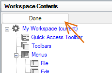 - In the Workspace Contents pane, select the Quick Access Toolbar node.