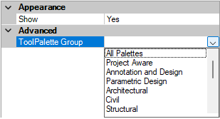 - In the ToolPalette Group box, select one of the listed tool palette groups to associate it with the ribbon tab.