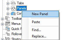 - Right-click the Panels node. Click New Panel.