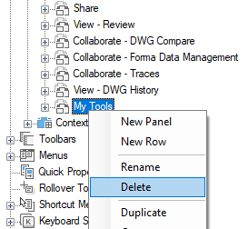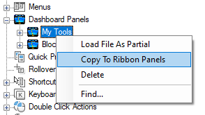 - Right-click the toolbar that you want to copy and convert to a ribbon panel. Click Copy to Ribbon Panels.