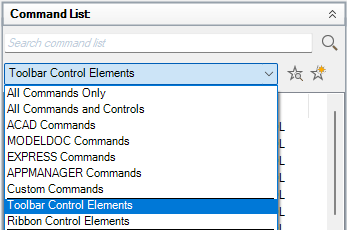 - In the Command List pane, Categories list, select Ribbon Control Elements.