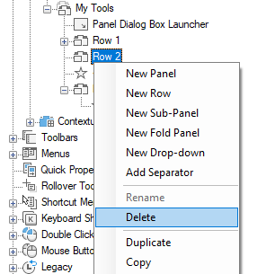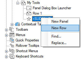 - Right-click the ribbon panel to which you want to add a row. Click New Row.