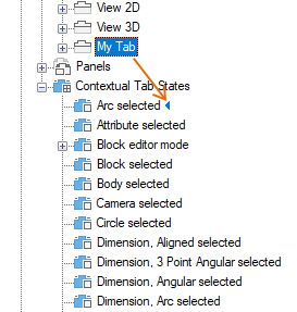 - Drag a ribbon tab from the Tabs node to a ribbon contextual tab state.