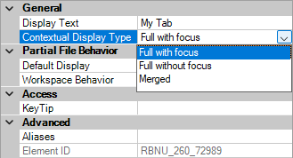- In the Properties pane, Contextual Display Type box, select Full or Merged.