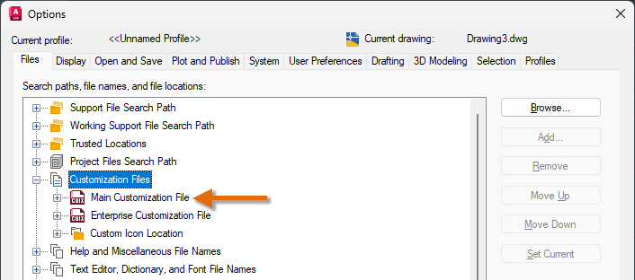 Customization (CUI/CUIx) files define user interface elements such as the Quick Access toolbar (QAT), ribbon panels and tabs, palettes, “classic” toolbars, and pull-down menus. Based on the previous release from which you are migrating, the Migrate Custom Settings utility looks for the CUI or CUIx file specified by the Main Customization File setting. The main customization file is migrated in addition to the partial customization files loaded in the main CUI/CUIx file.