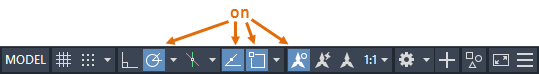 The status bar provides quick access to some of the most commonly used drawing aids and tools. Here is the default status bar.