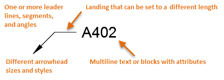 Note: The MLEADER command provides options to change the input order of the command—whether you want to specify the arrowhead, landing, or content first.