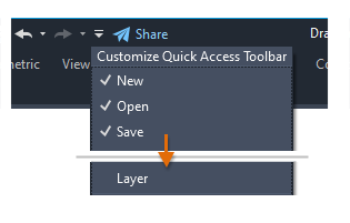 When the ribbon is minimized, access to the tools on the Layers panel is not as convenient. However, you can add the Layer drop-down list to the Quick Access toolbar instead.