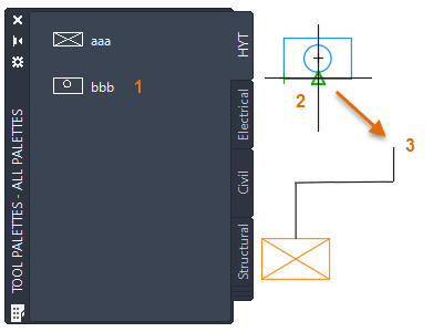 This exercise should help you evaluate whether tool palettes are an efficient way to place blocks for your requirements and workflow. If you normally insert many different block references, you can create several palettes to organize your blocks. You can also organize palettes into palette groups as described in a referenced topic below.