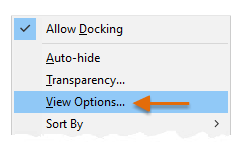 10. Right-click in any unused area inside the HYT palette. Choose View Options from the menu.