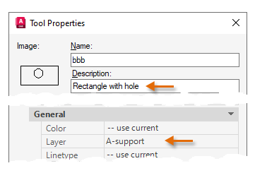 • Enter a description such as Rectangle with X for aaa and Rectangle with hole for bbb. The descriptions act as tooltips.