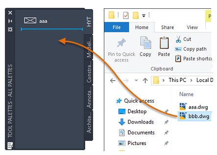 7. Open the HYT Library folder in File Explorer. Then, drag the two drawing files onto the HYT palette.