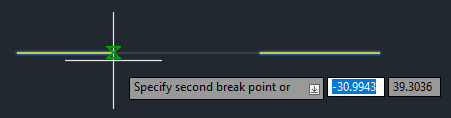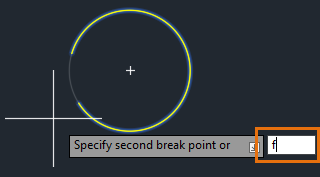 4. When prompted for the second break point, enter F to use the First point option and override the original first point.