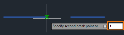 3. When prompted for the second break point, enter F to use the First point option and override the original first point.