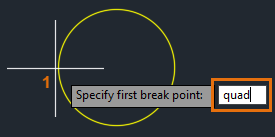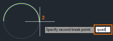 5. Use the QUADrant object snap and specify the first break point as the quadrant of the circle.