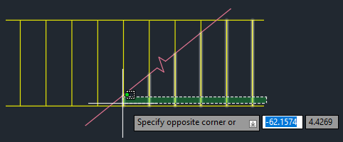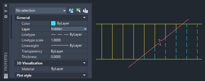 4. Using a crossing window, select the six lines to the right of the break line and change the layer to hidden.