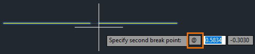 @ instructs the BREAK command to use the previous point specified for the second point. In this case, the midpoint of the line is used for the first and second points, resulting in two equal segments without a gap between them.