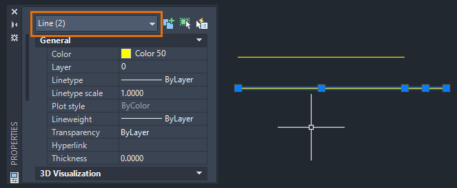 You will see Line (2) displayed in the Object Type drop-down list at the top of the Properties palette.