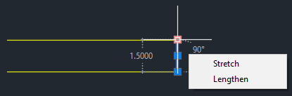 7. Select the short line segment as shown below and select the far-right grip.