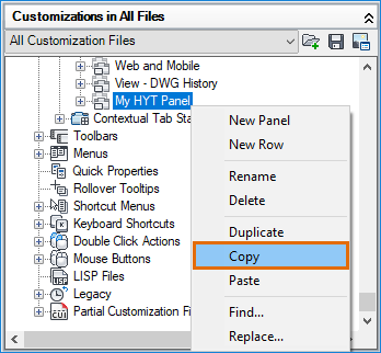Under the Panels node, right-click My HYT Panel and choose Copy.