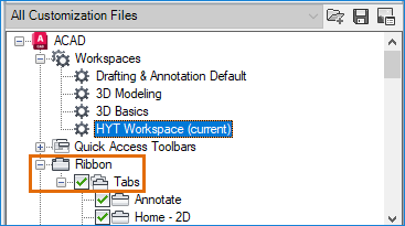 New ribbon tabs are not automatically added to a workspace. The following steps explain how to add the My HYT Tab to the current workspace.