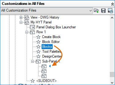 Select the Blocks command you've added to Sub-Panel 1.