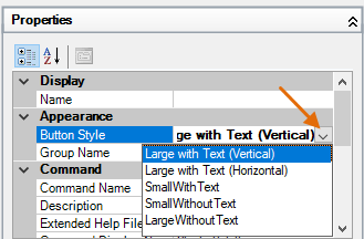 In the Properties pane, on the right, under Appearance, click Button Style drop-down list and choose Large with Text (Vertical).