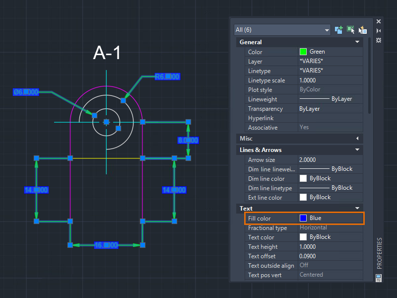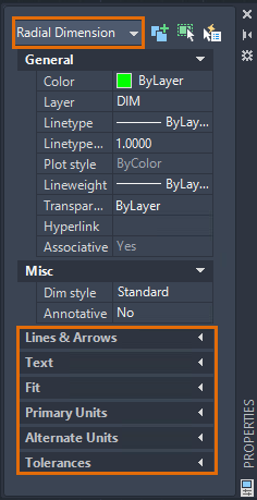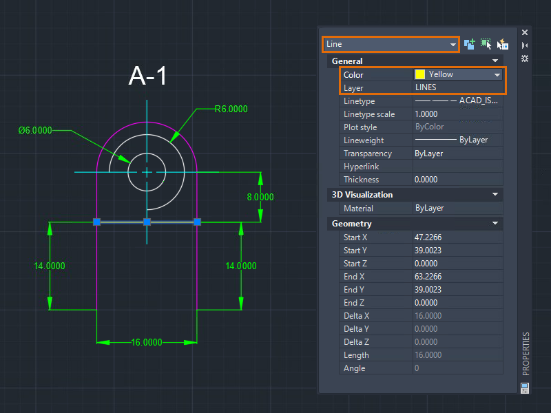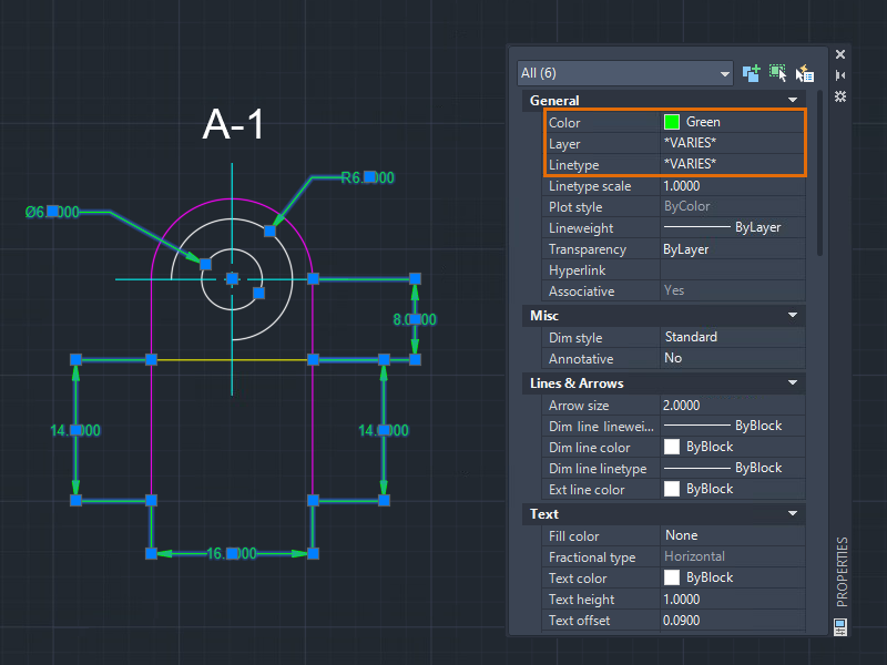 Every AutoCAD object has its own set of properties. General properties such as color, layer, linetype, linetype scale, lineweight, and some others are common to most objects. Some objects have specific properties for themselves.